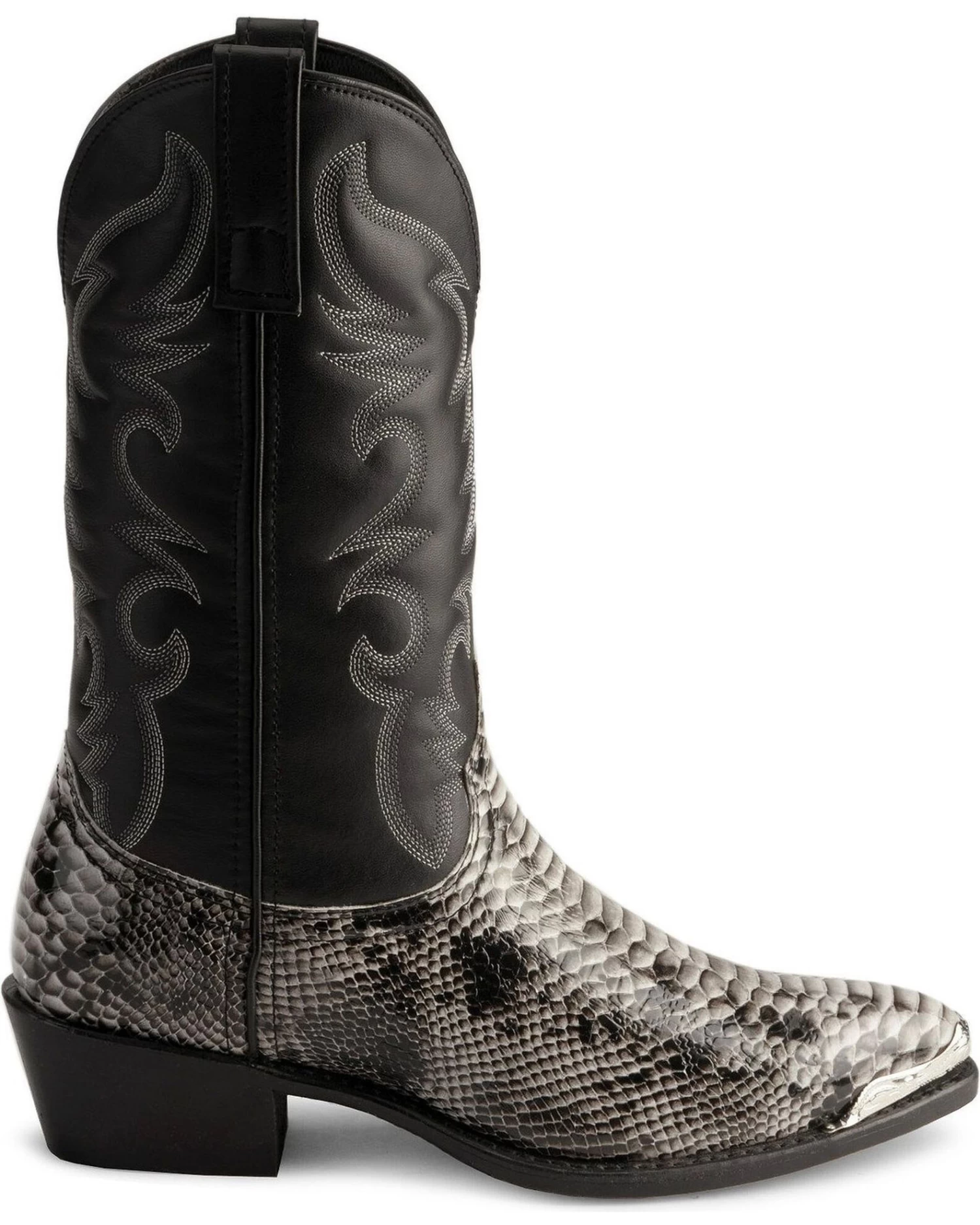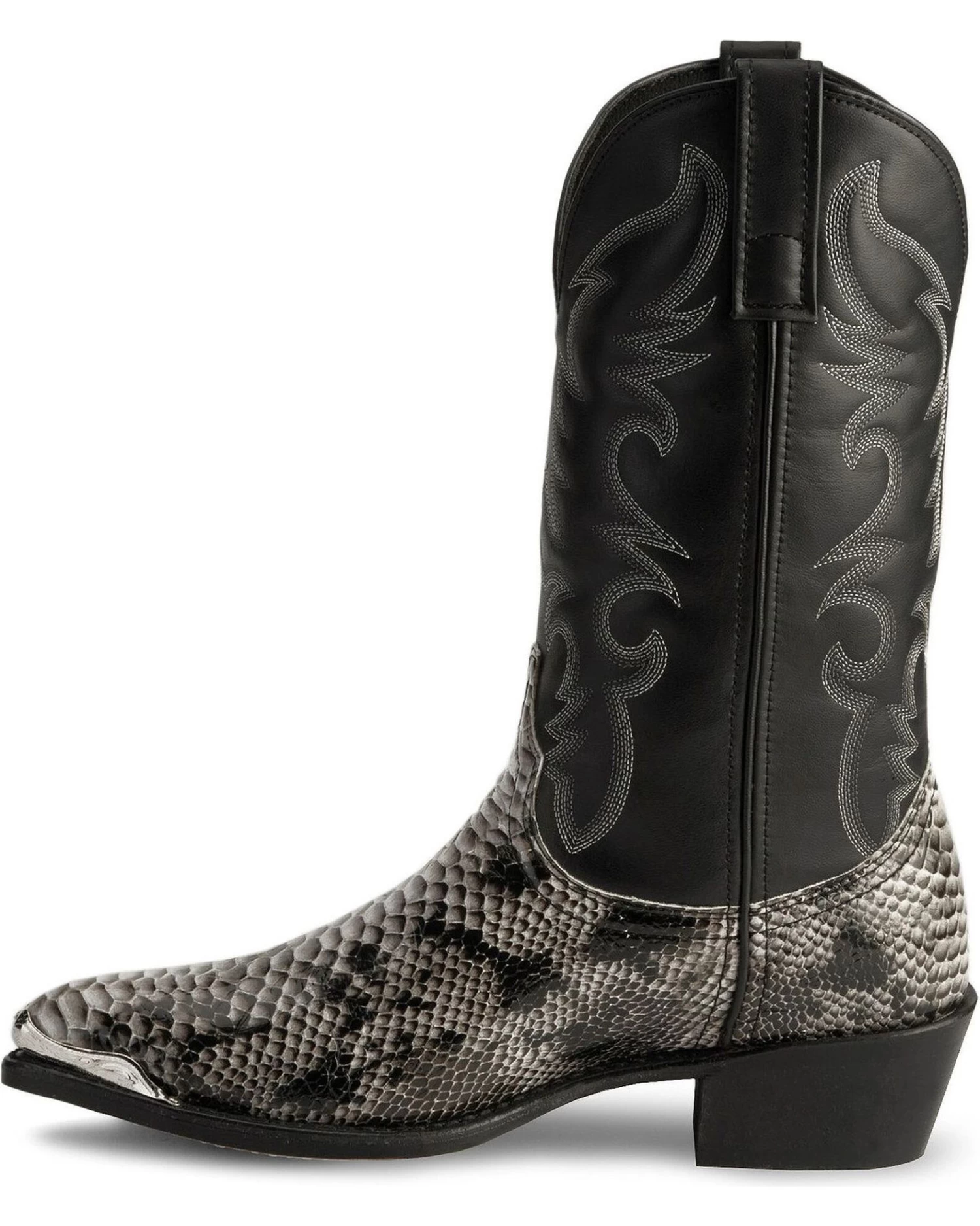 Dress up your outfit with these Monty snake print western boots by Laredo. These great looking cowboy boots feature a snake leather-like material on the foot as well as a leather-like shaft detailed with fancy stitching. Laredo’s Flex outsole is a long-lasting, high abrasion resistant rubber that looks like a leather outsole. The comfort cushion insole provides all day comfort to the feet an it helps keep your feet dry with its moisture wicking cover.